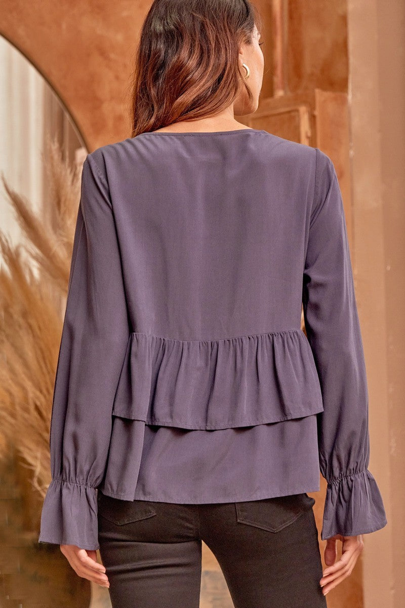 Absolutely gorgeous dark blue, tiered, babydoll style top. Amazing embroidered design with beautiful bold colors.