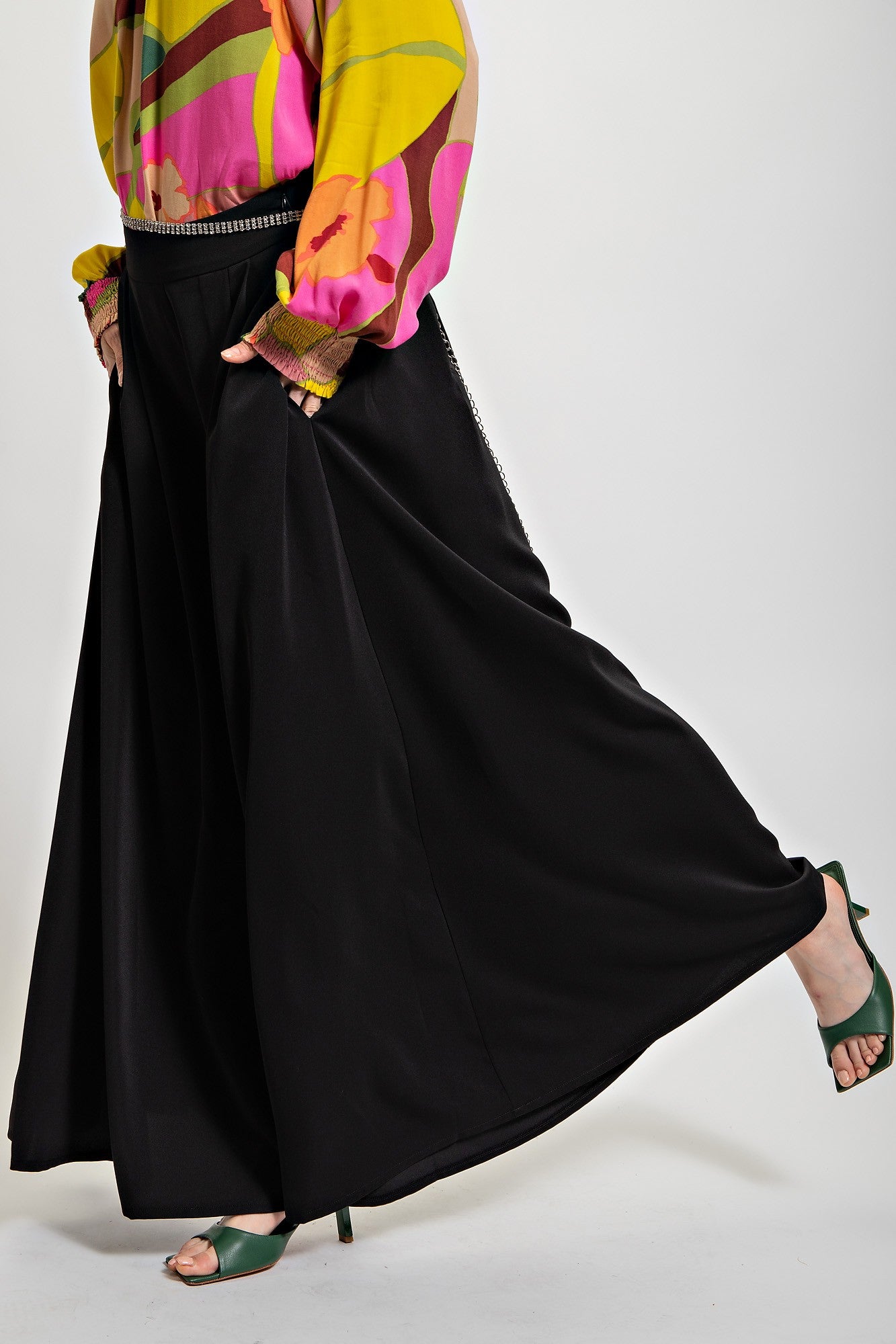 Absolutely stunning full flare pants with pleated front and pockets. These are high waisted and zip on the side.