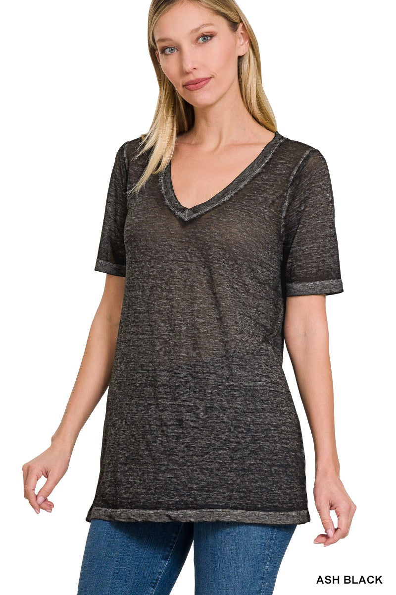 THE most lightweight, breezy tee, it feels like you're not wearing anything! Black washed v-neck tee.