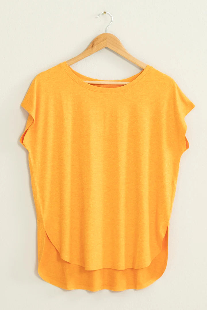 Super soft, short sleeve top with round neckline and hemline. Side slits for comfortable fit. True to size.