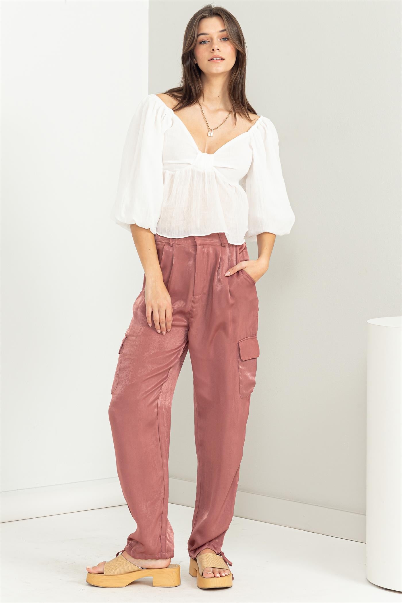 These are the most adorable pants!! So many details on these. They are lightweight and feel like silk!! From the trendy cargo pockets to the drawstring tie bottoms, these pants slay all day!!